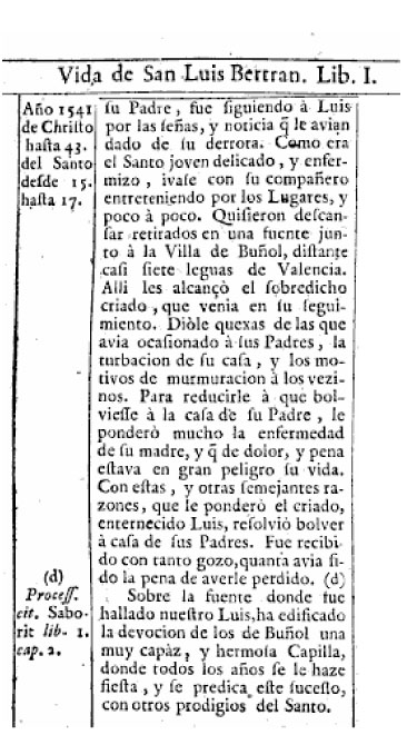 La estancia de San Luis Beltran en Buñol 1541