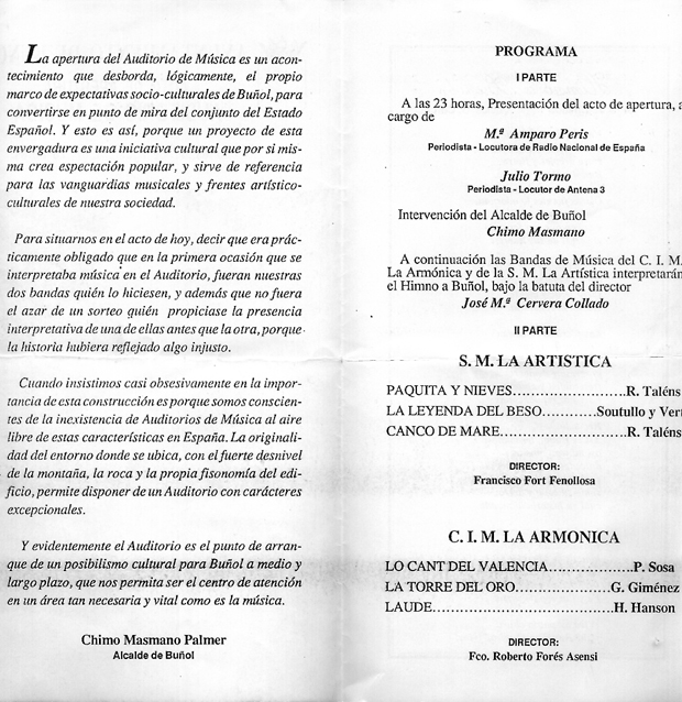 Programa inaguración Auditorio 1987 2